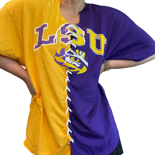 LSU Upcycled Color Block Lace Up Tee (XXL)